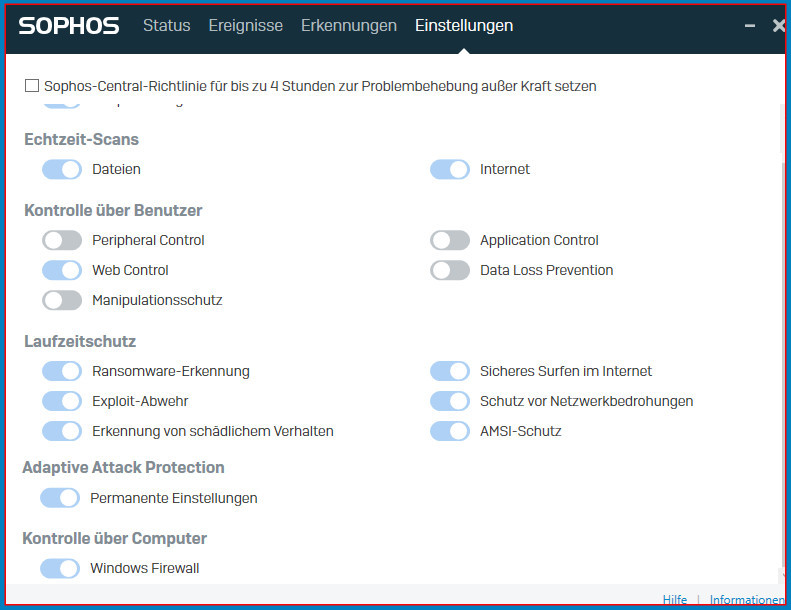 Sophos schützt wirklich optimal und wer sein Windows 10 Rechner auch nach Ende de Supports weiter benutzen will, ist mit Sophos bestens beraten.